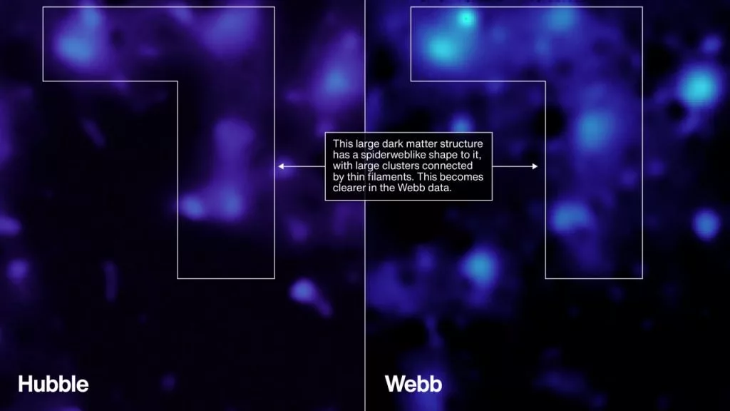 پیش از این، تلسکوپ هابل نیز میدان COSMOS را مورد بررسی قرار داده بود و تصویری اولیه از خوشه‌بندی کهکشان‌ها ارائه کرده بود. اکنون جیمز وب با قابلیت‌های فروسرخ خود توانسته این نقشه را به زمان‌های دورتر و جزئیات بیشتری گسترش دهد. «دایانا اسکوگنامیگلیو» از آزمایشگاه پیشرانش جت ناسا می‌گوید جزئیات نقشه جدید به حدی دقیق است که می‌توان آن را خیره‌کننده توصیف کرد. رصد فروسرخ همچنین به ستاره‌شناسان امکان شناسایی شبکه کیهانی را می‌دهد؛ رشته‌های به‌هم‌پیوسته ماده تاریک که کهکشان‌ها مانند دانه‌های تسبیح روی آن قرار گرفته‌اند و جای نخستین توده‌های کیهانی پس از بیگ‌بنگ را نشان می‌دهند.